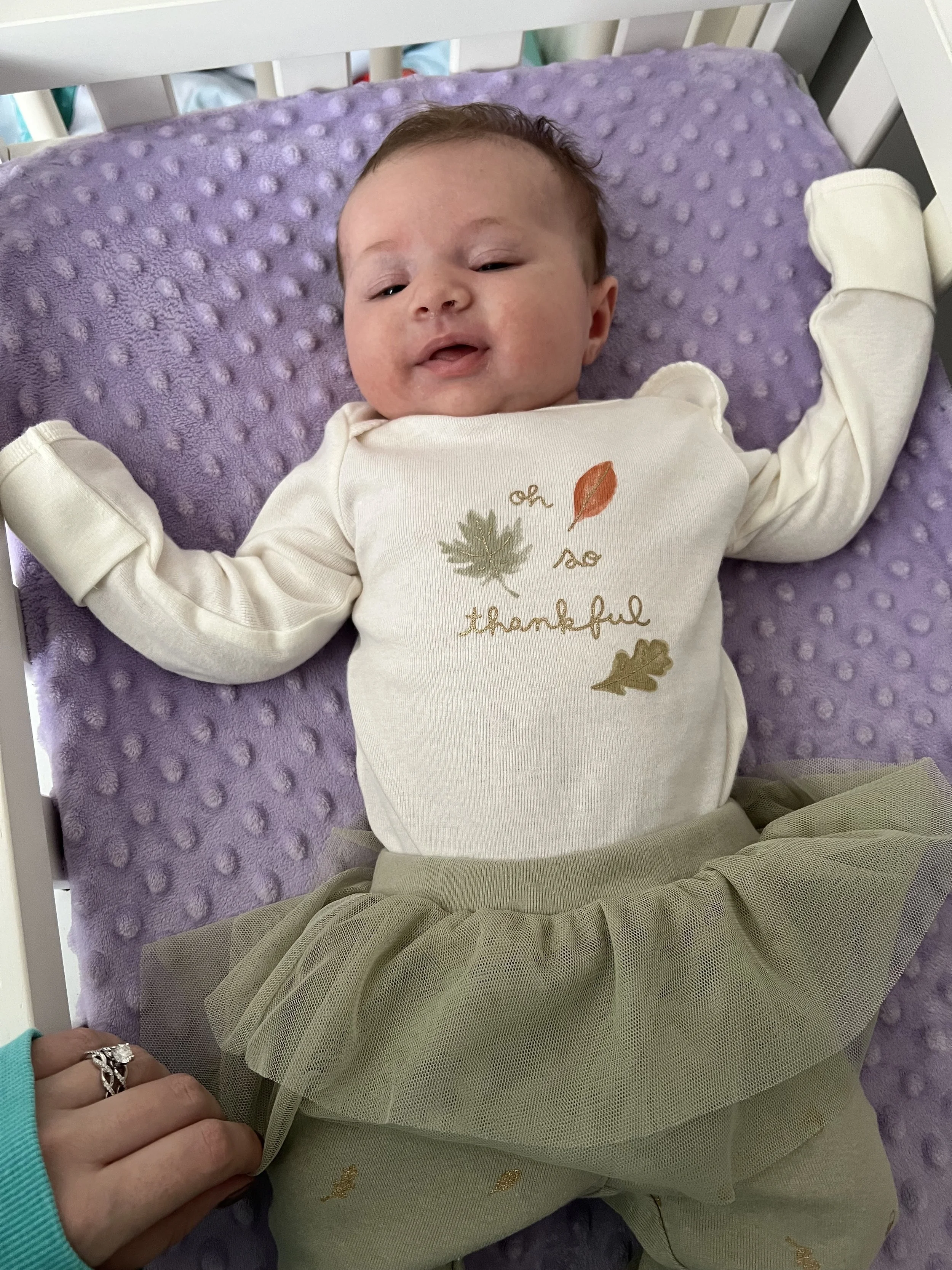 Can you believe Josie is already 2 months old? I sure can’t! This little one has been BUSY! So, let’s jump right into all the exciting things our sweet girl has been up to! First, we celebrated Josie’s baptism. It was a beautiful day, and I was so happy to have her wear the same baptismal dress that Lyla wore. In my opinion, the best part about her having the same gender is how identical they look. It’s honestly crazy. Speaking of big sis, Josie got to experience her first zoo trip with her this month! We lucked out on the weather. It was a perfect Autumn day, and while we don’t know what Josie’s favorite animal is just yet (She snoozed about the whole time we were there), I have a feeling there will be more zoo memories to be had in the near future. Another first for Jose this month was her first Thanksgiving! She may not have been able to eat all the delicious food, but our family is extra thankful for this sweet babe of ours!