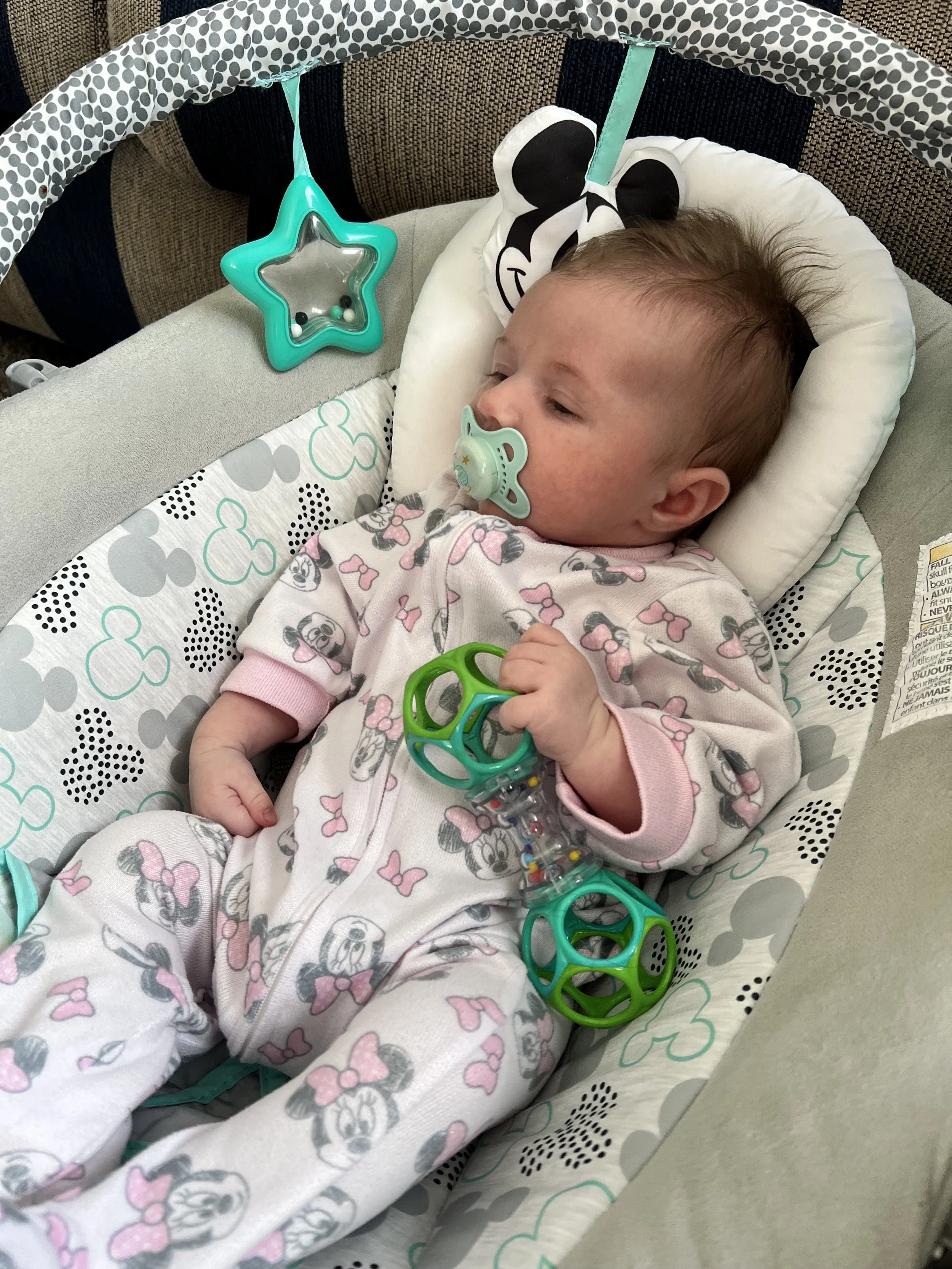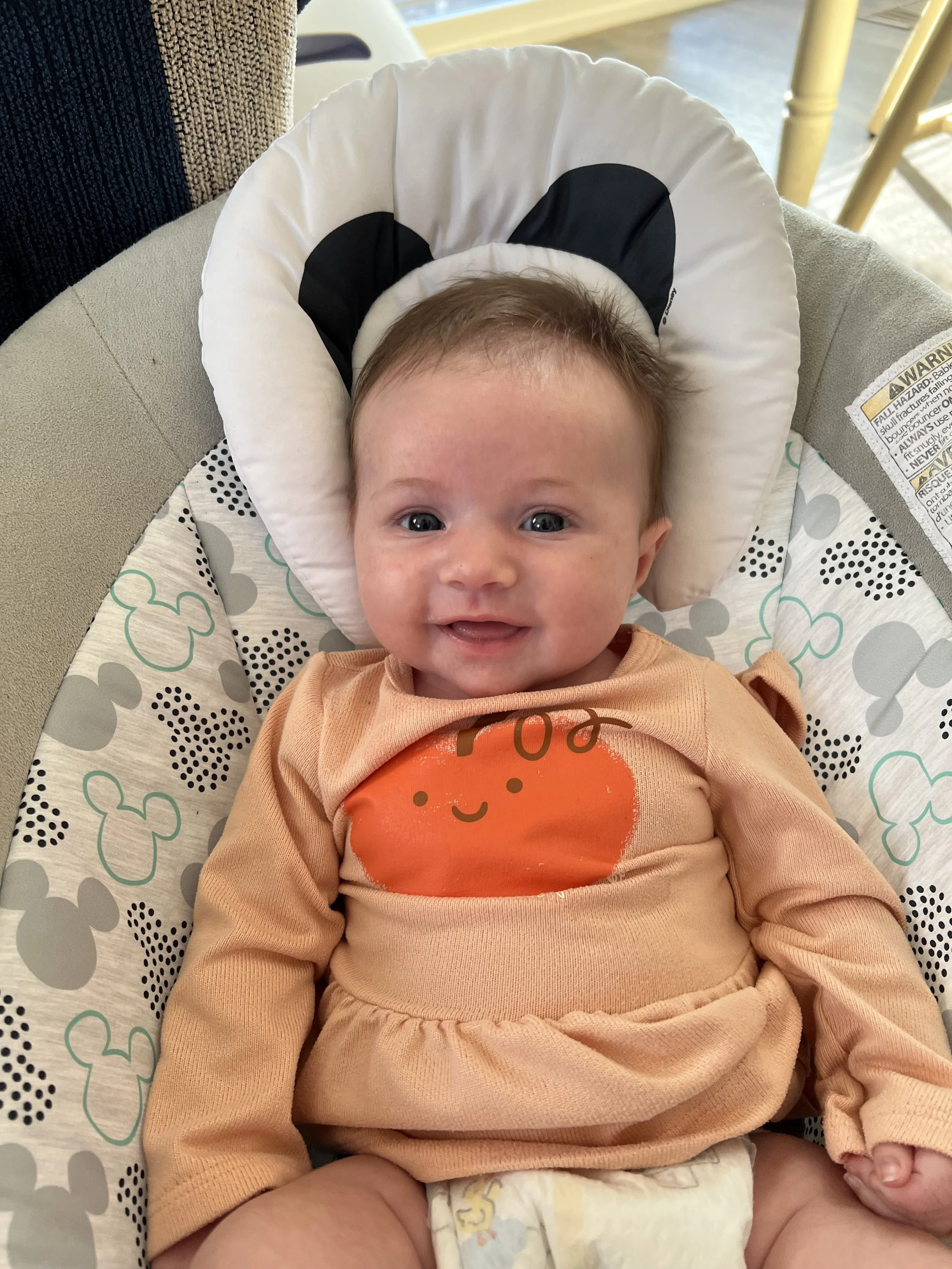 We’ve learned that Josie has some tricks up her sleeve. One day I was changing her diaper, and when I went to put the new one on, she kicked her foot out and flipped it over her head! Thankfully, she only does that with clean diapers or else we’d really be in trouble! 😂 One other trick I’ve witnessed her do is pick her rattle up with her feet! She’s been working on her hand grip, but apparently decided her feet needed some practice too 😂.