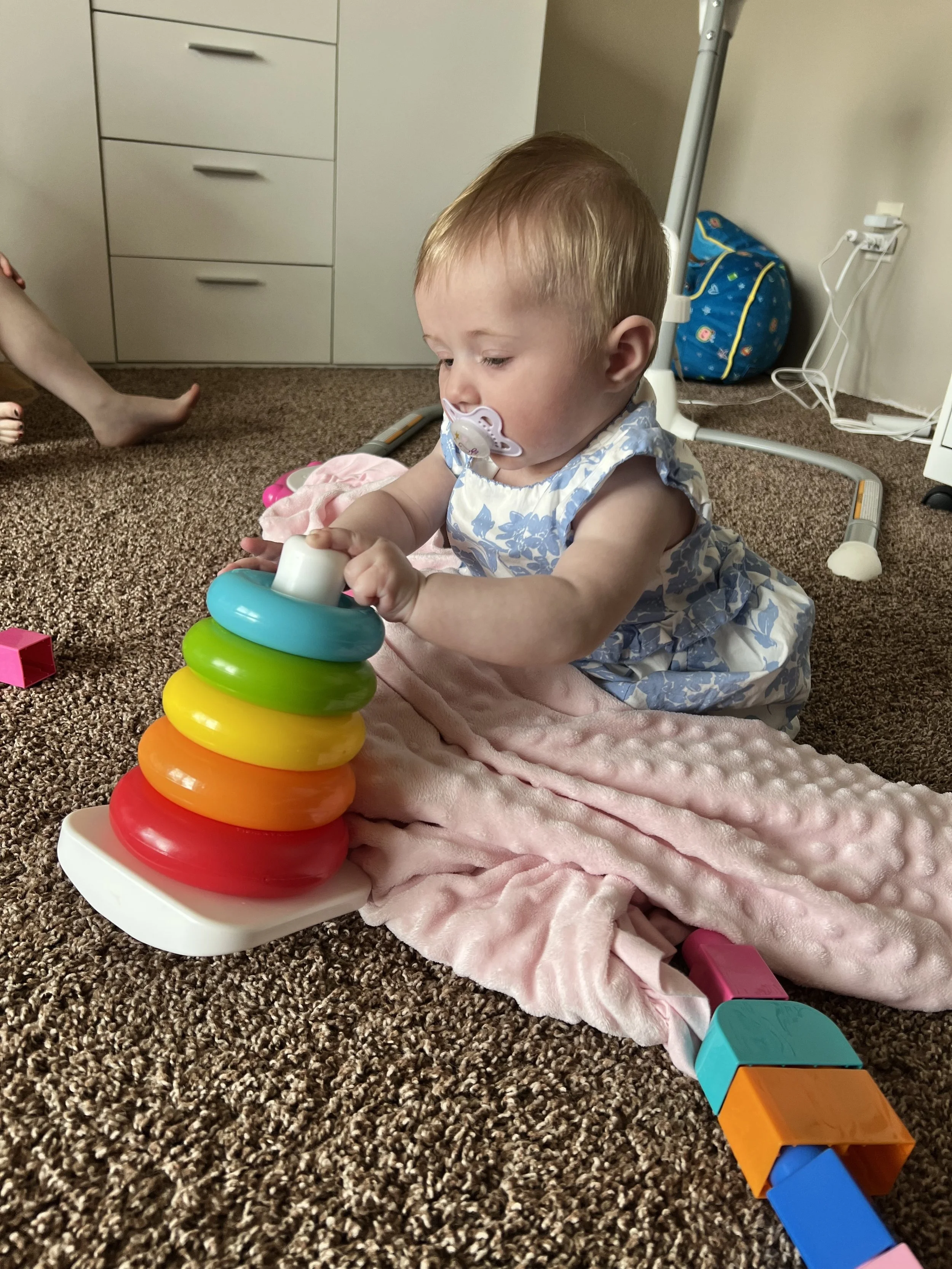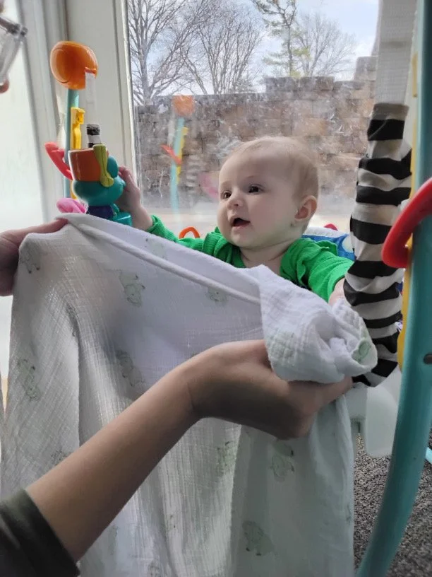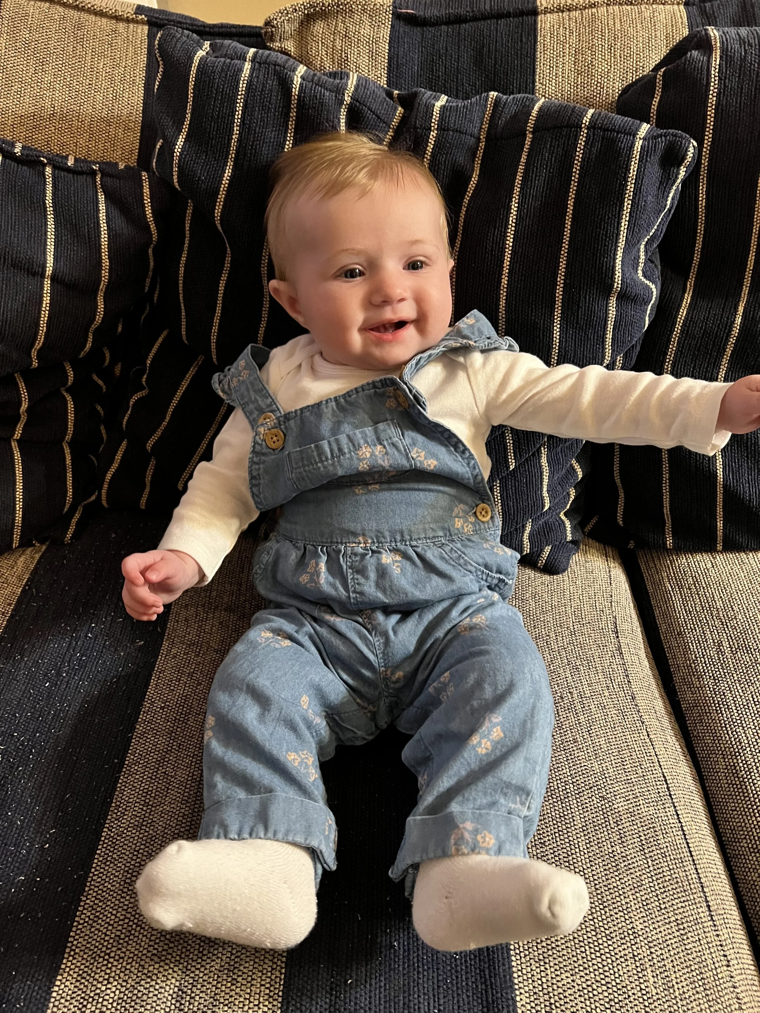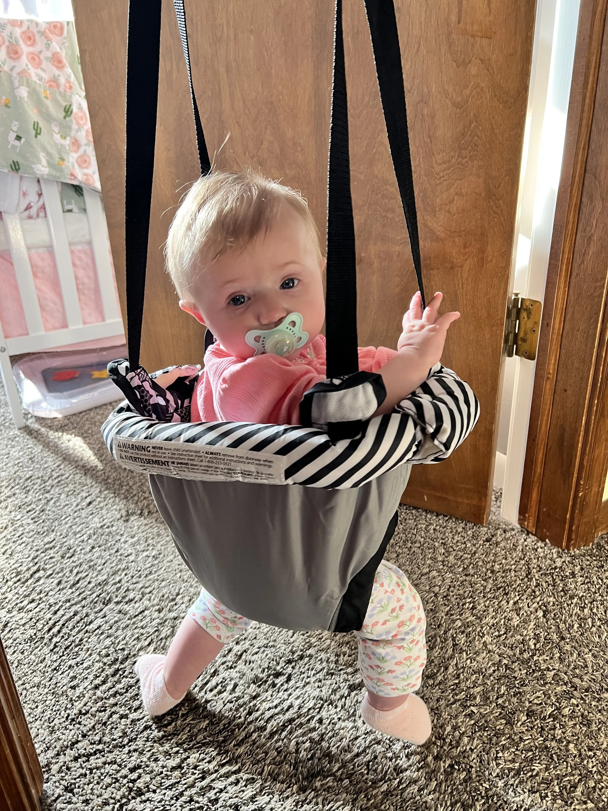 Josie has been working on using her pincer grasp and sitting up without assistance. She’s done such a great job with this! She really loves playing with different fabrics and enjoys having her feet rubbed when she’s tired. She also loves being in the bouncer and gets some air when she’s in it. One thing I’ve noticed that Josie does not like is cuddling when she’s overtired. If she’s overstimulated or we get her down too late, she doesn’t want to be rocked. She would prefer to go down in her crib and self-soothe. Thankfully, she still lets me cuddle when she’s alert and happy!