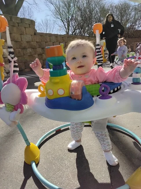 Daycare has been going great! She has lots of little friends and gets along with them very well. Daycare shared one day when the babies were lying down, Josie reached over for her friend’s hand and held it while they lay next together. They also shared that she gets a kick out of the lion pictures they have hanging on the walls. Josie busts into a fit of giggles when she sees them. Maybe that’s her way of telling us that the lion is her favorite animal lol.