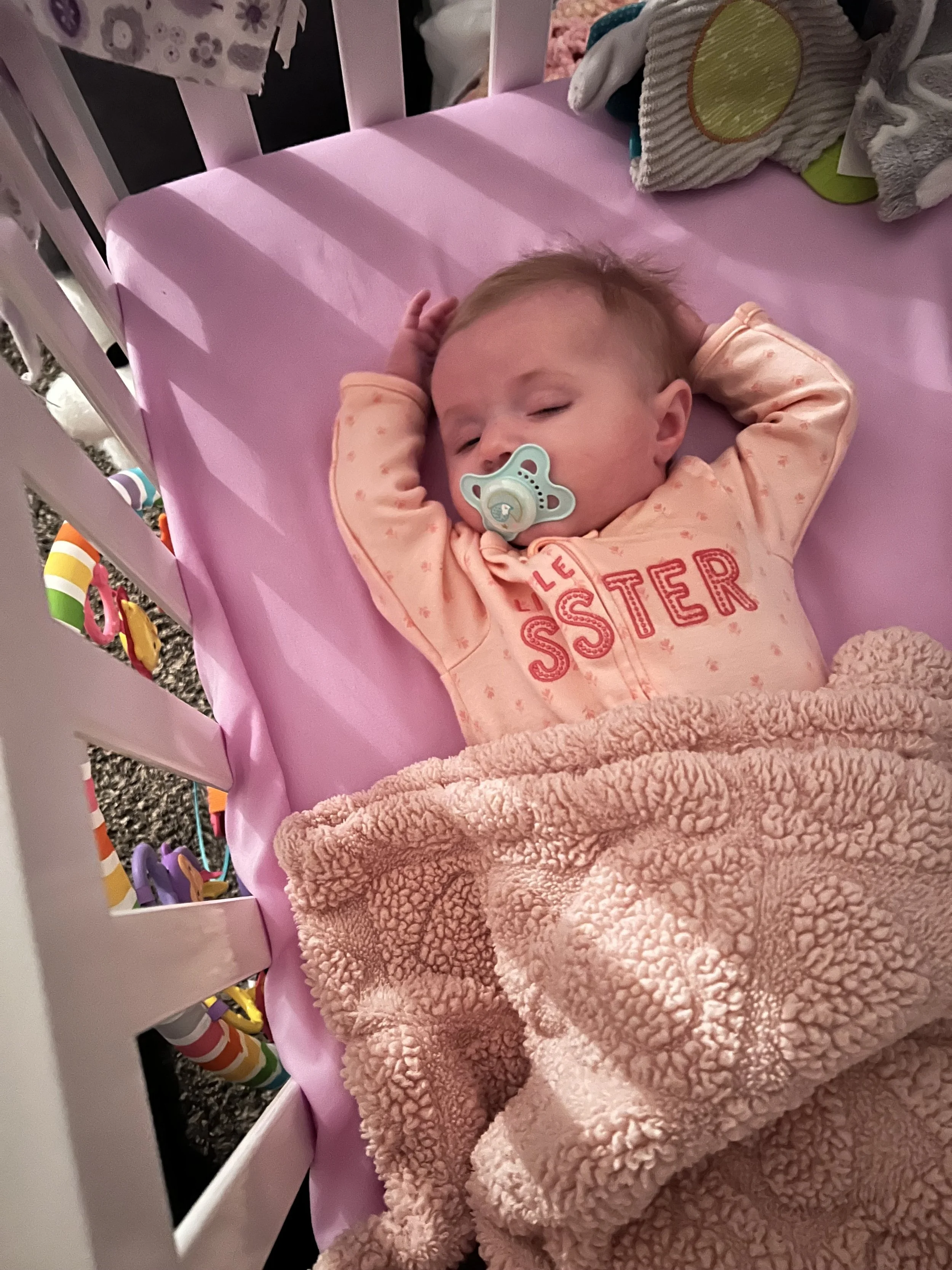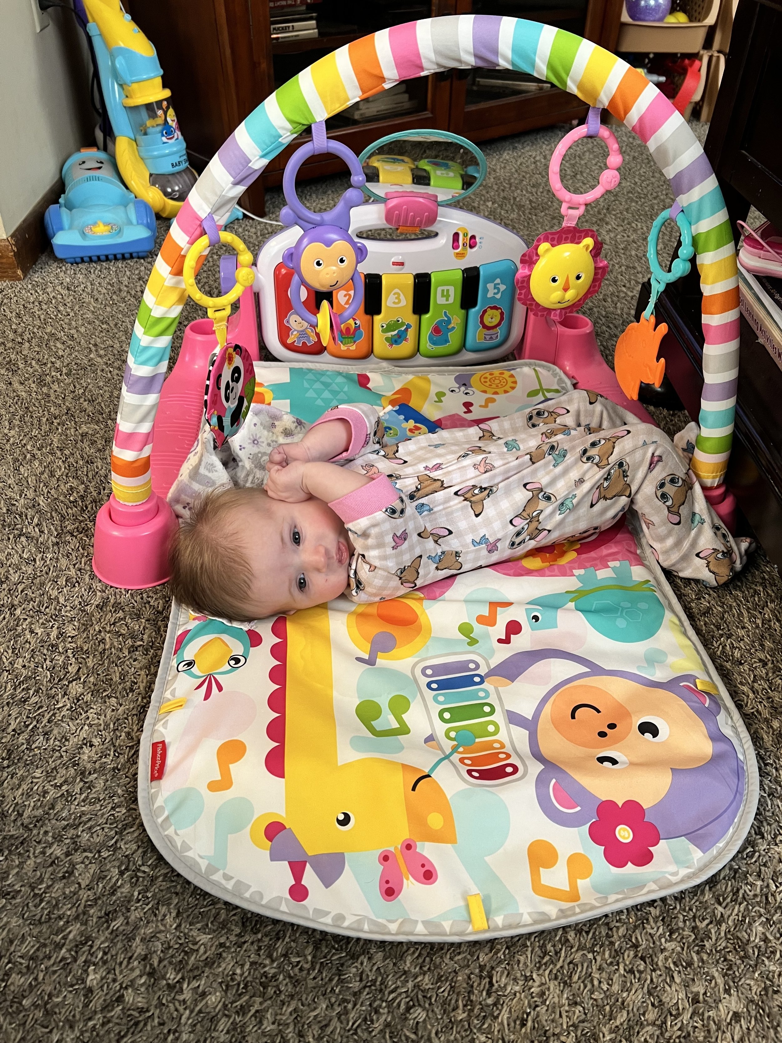 Josie is very much our early bird, whereas Lyla has always been our night owl. Josie is all smiles in the morning! Actually, she’s smiley about 90% of the time. She goes bananas when she sees Lyla, and it’s the cutest thing I’ve ever seen. My prayer was for them to be close, and I love that it’s come to fruition. Fingers crossed it stays that way! Every day, Josie is getting stronger. She’s constantly moving around the play mat, and has rolled over from tummy to back a few times. Her neck muscles are on point, and it’s amazing to see how high she can lift her head these days. She is also following so much more with her eyes than ever before.