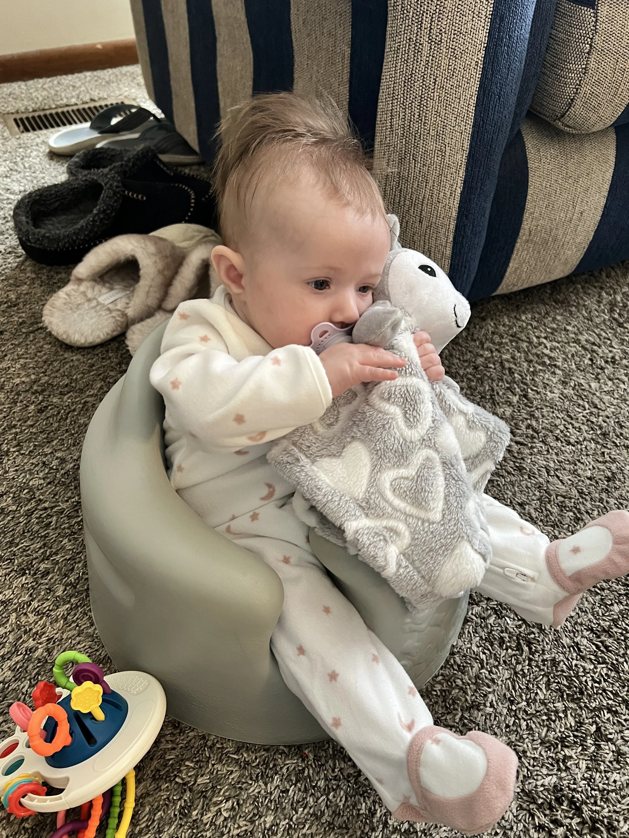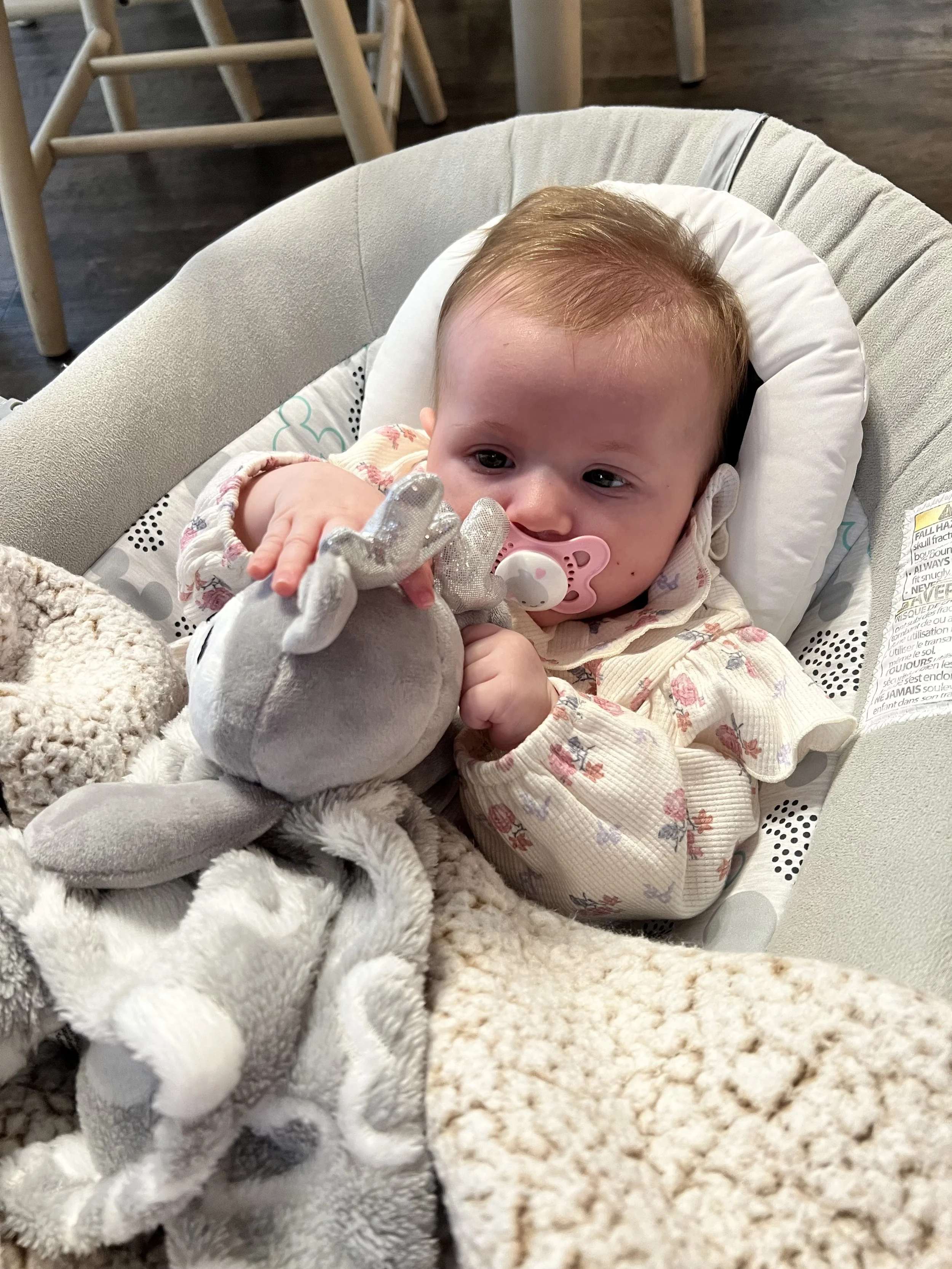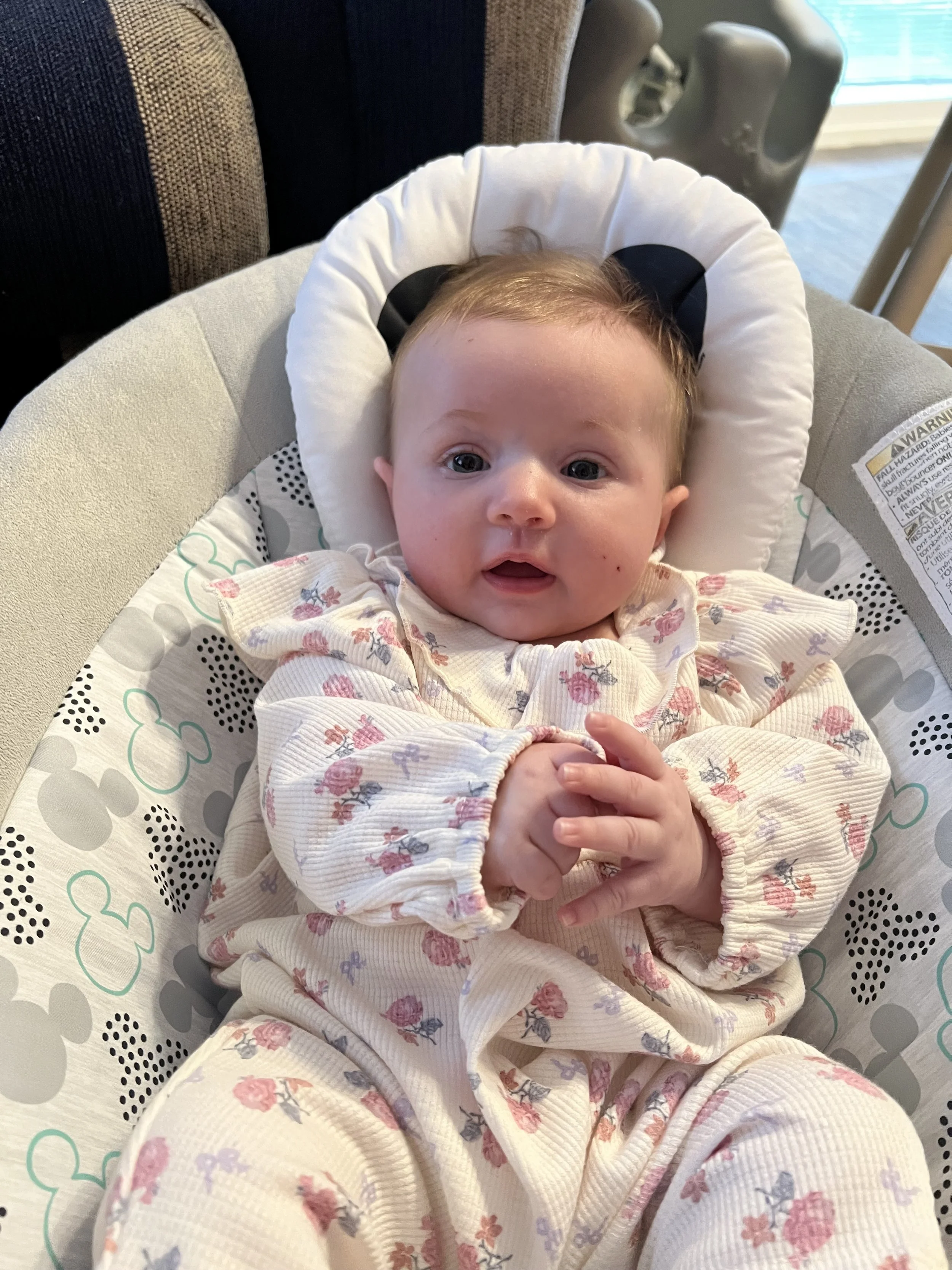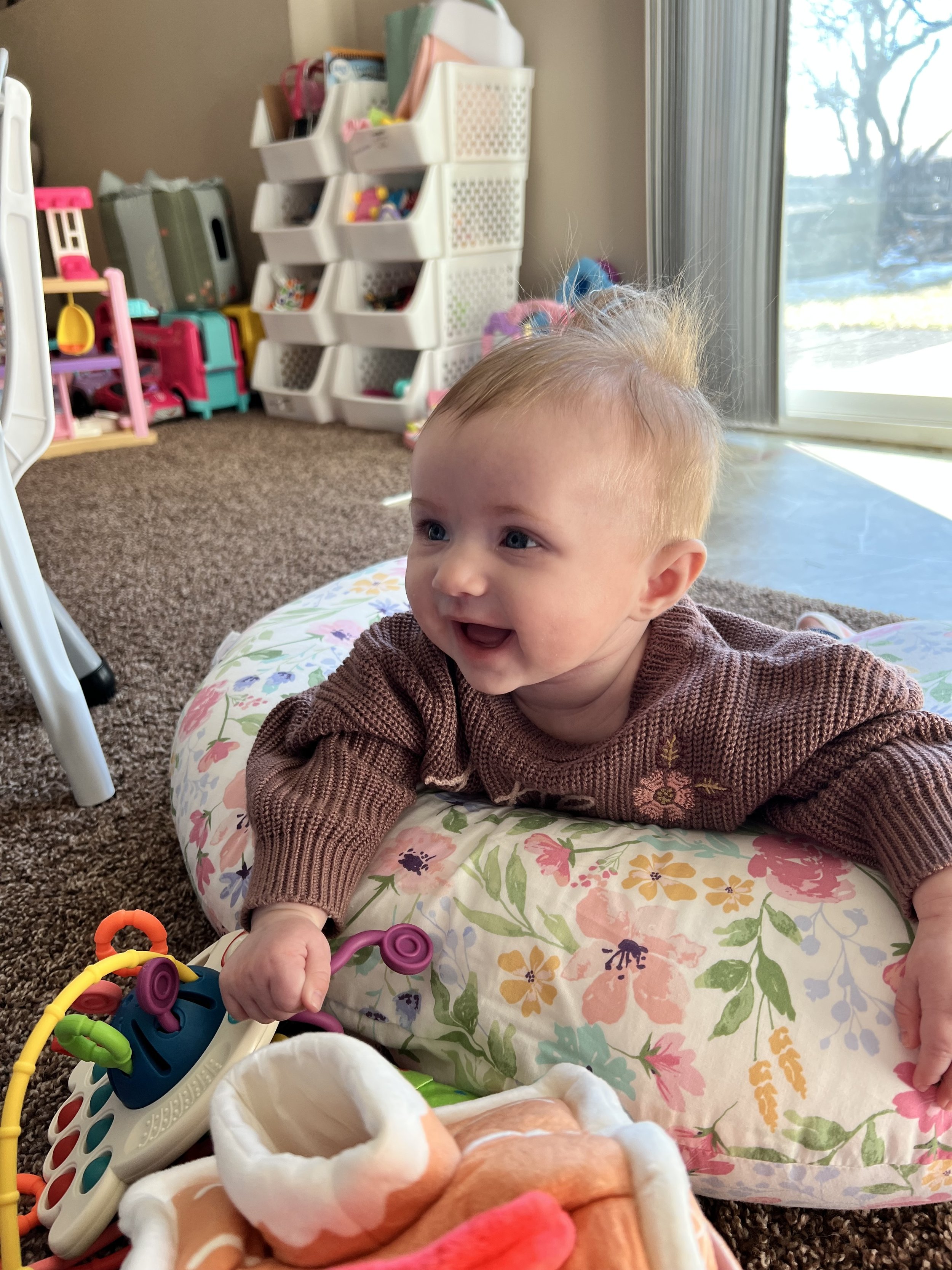 Welcome back to another Josie’s Cozy Corner update! This mama got behind this month! Better late than never, right? So, let’s dive in and chat about what our sweet Jose Jose has been up to. At her 4-month appointment, her pediatrician said she was right on track for development. She weighed 12 lbs and 10.5 oz. and was 24.5 inches.