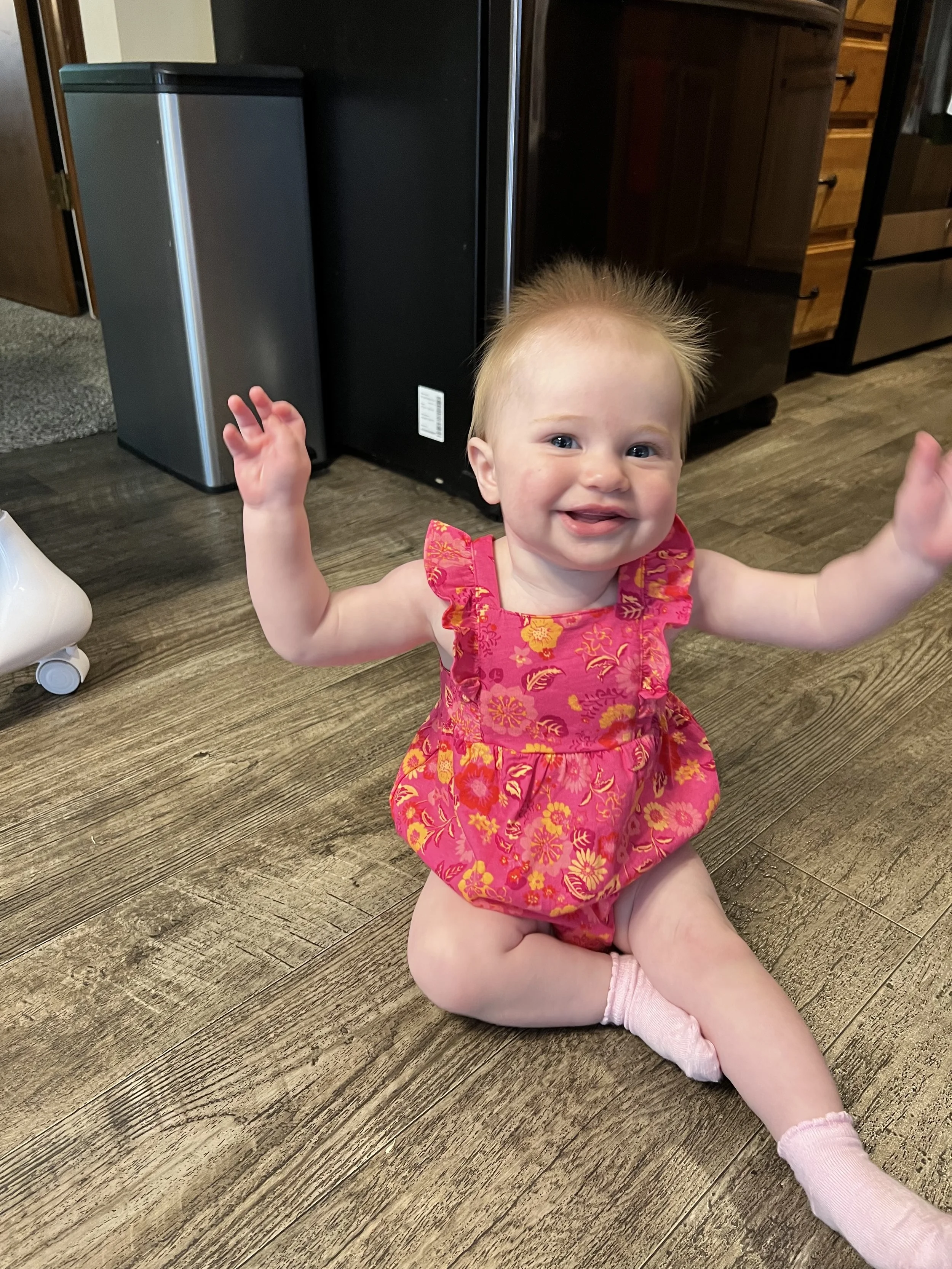 I’m happy to report that Lyla officially says “mama”. This makes me so happy! I’ve been waiting forever and it melts my heart to finally hear her say it. Lyla and I got to celebrate my first Mother’s Day with her here earthside and it was incredible! Currently, she enjoys coming to find me when Daddy asks her “Where’s mommy?”. Lyla also finds it funny to swat at my face and when I pretend to cry she giggles uncontrollably. Who needs toys when you can just beat up your parents? 😜