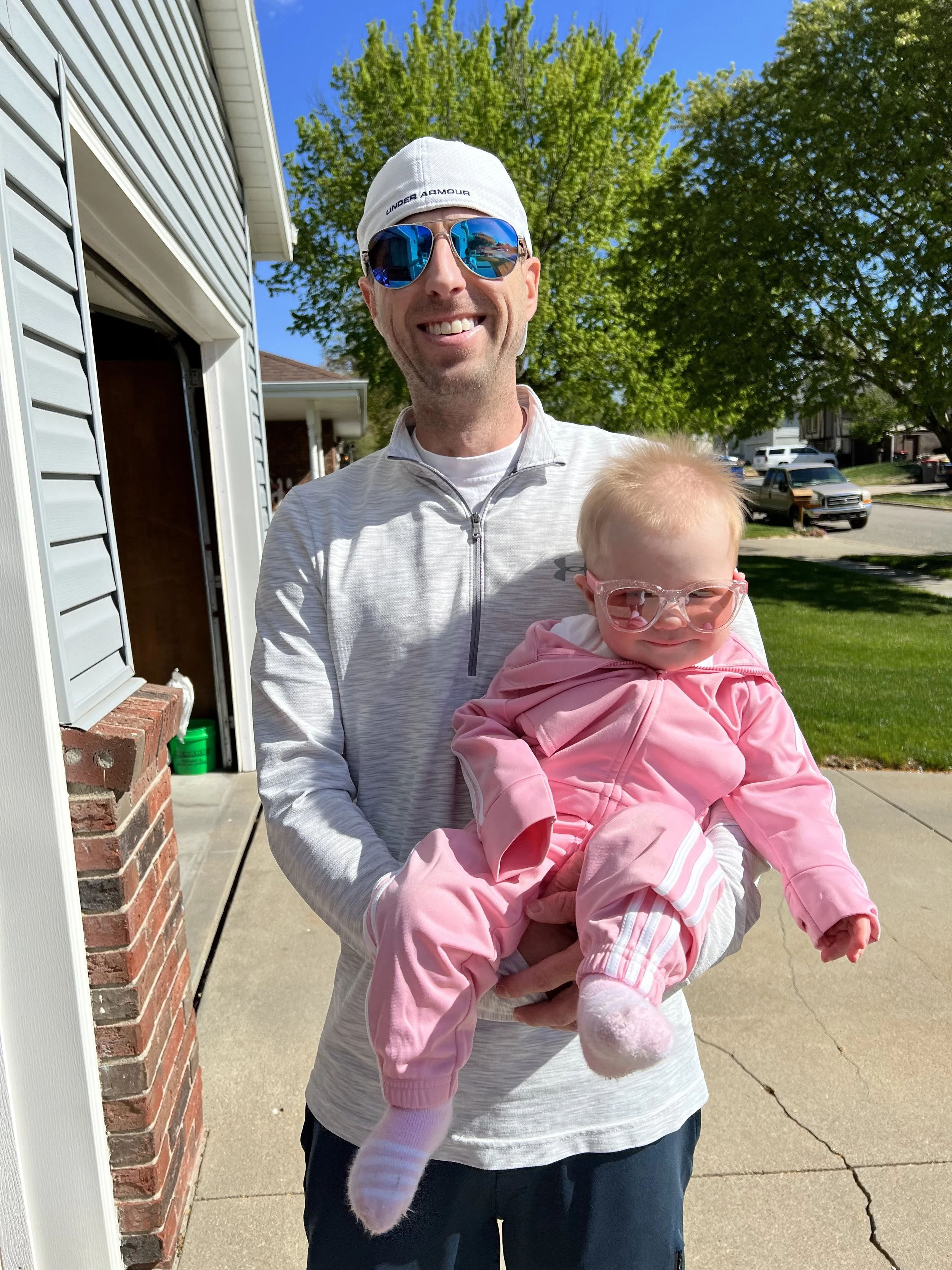 Speaking of playing, she absolutely loves her “big kid” friends at daycare. There’s one girl in particular who takes really good care of Lyla. If she sees older kids running around Lyla, she will yell “Stop! There is a baby right here!”. Lyla in turn will follow this little girl around all day. They’ve become the best of friends! ❤️ I’m glad Lyla has so much fun with her daycare friends. However, she’s been a little leery of new adult faces. We’ve hit the “stranger danger” phase and Lyla will not let us hand her off to someone she is not familiar with. We celebrated Lyla’s cousin’s graduation this month, and Lyla was picky about who could hold her. Mom or Dad had to be in sight at all times or else risk crocodile tears. Thankfully, I was able to get one good picture of Lyla with her cousin!