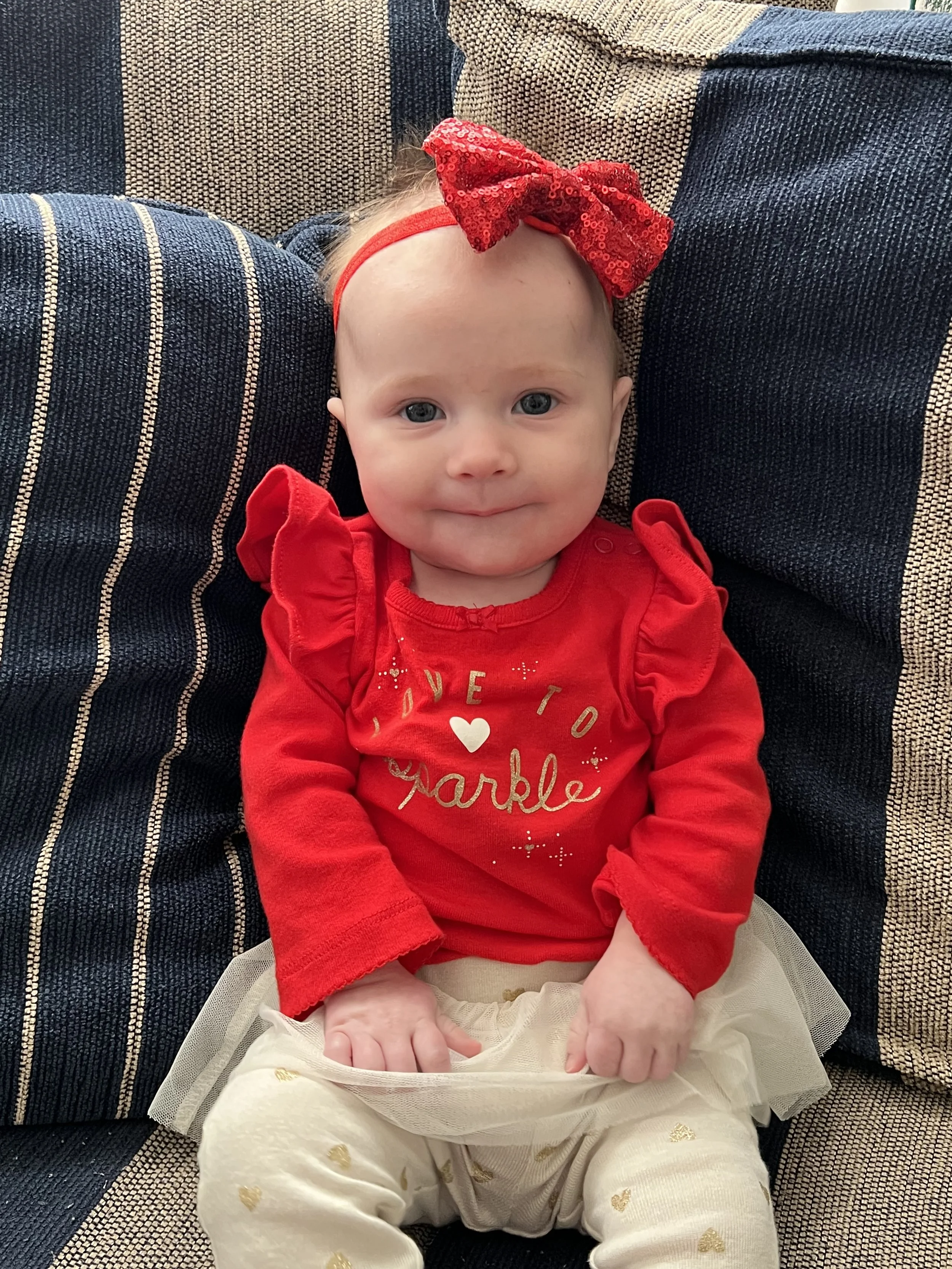 For milestones, she has started to lift her head a lot when laying down and I think she is in the very early stages of trying to sit up. She also said her very first word!! Google says most babies don’t say their first words until they are around 9 months, but I have her on video repeating the word “hey” to me, so I’m counting it! 😂