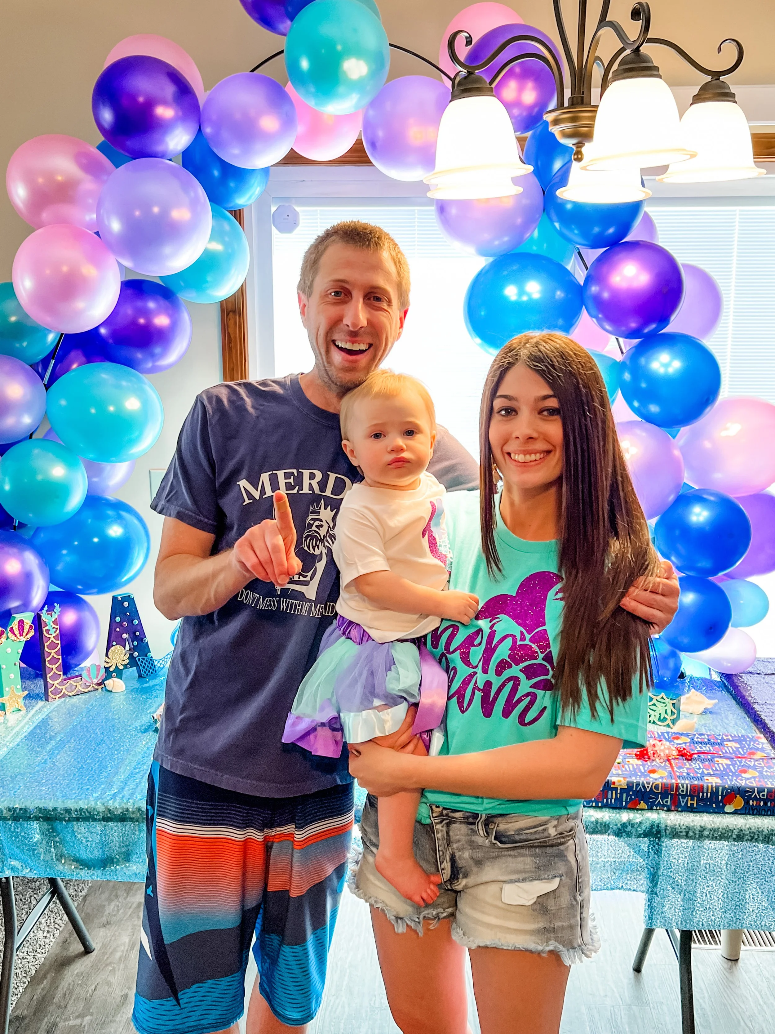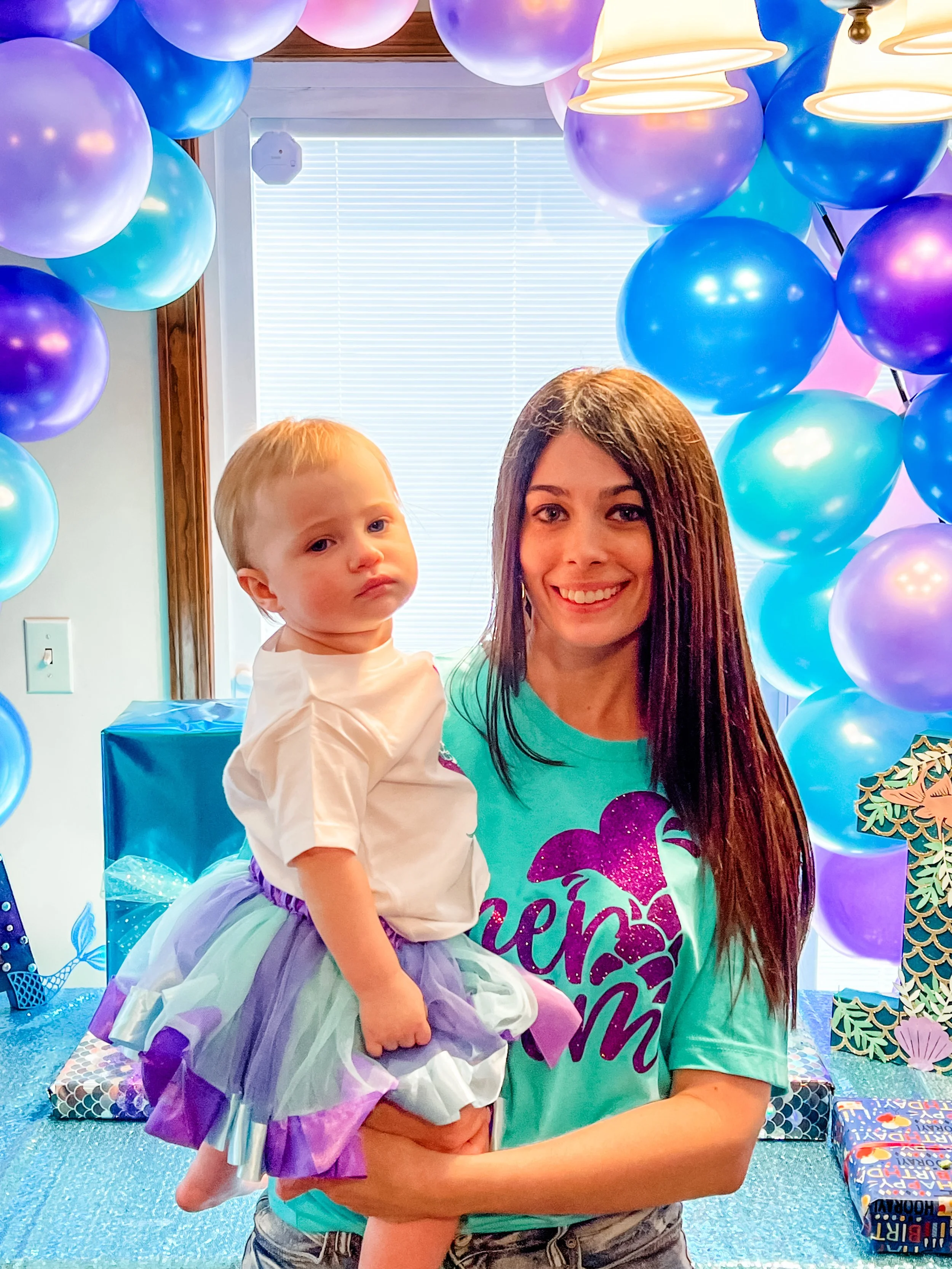 Mom and dad also bought custom “mermom” and “merdad” shirts to wear for the party. We of course had to make sure the guest of honor was dressed to the nines, so I bought Lyla a custom shirt from Etsy and found a mermaid inspired tutu for her party outfit. I spent a lot of time party prepping, but I loved every minute of it! I love making my loved ones feel special and being a mom, this is one of those things I look forward to doing. I can’t wait to share more party theme inspo in the future!