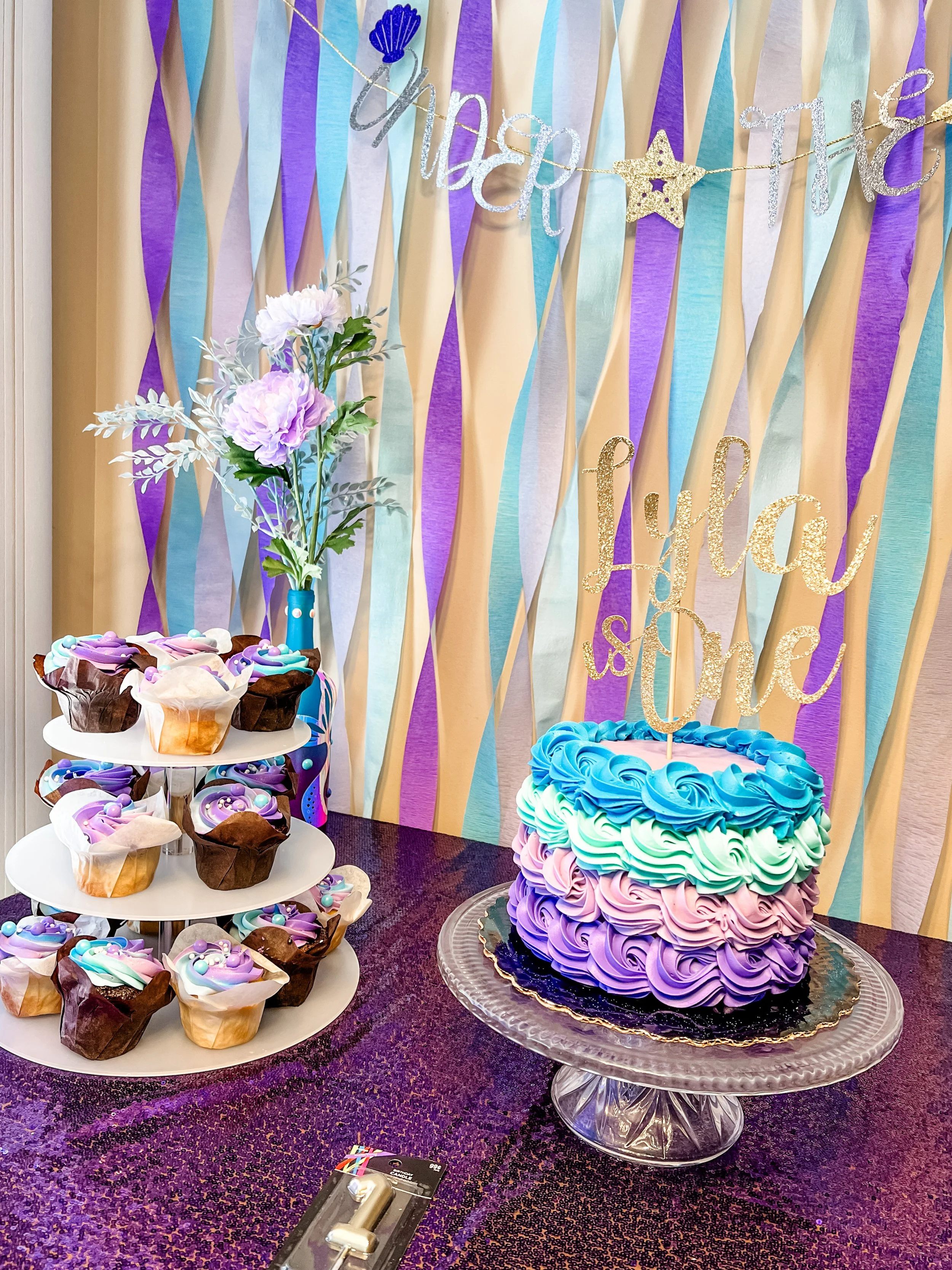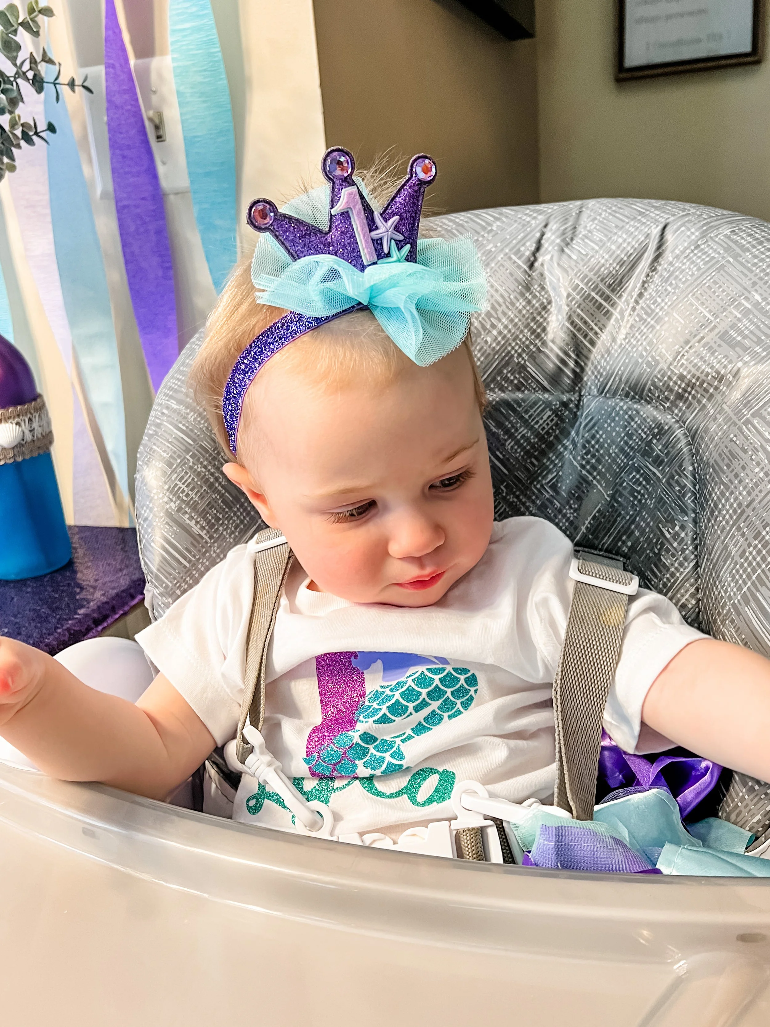Today, I’m coming at you with a throwback post of Lyla’s 1st birthday party theme! I never got a chance to share the details from that party, and I figured I’d share in case any of you have mermaid-loving girls. When I picked this theme for her first birthday, it was primarily because mermaids were insanely popular. The new “Little Mermaid” movie also came out, making finding decorations easy. I also think it’s a cute theme for little ones born in the warmer months because you can set up water activities to get the full mermaid experience!